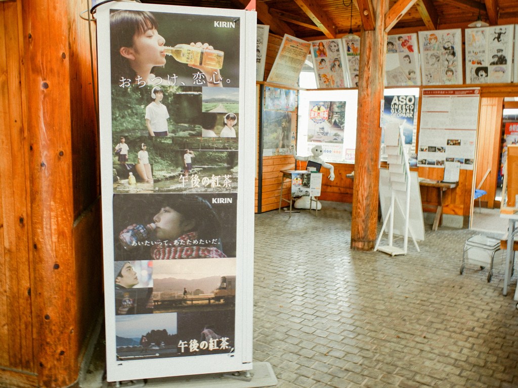 南阿蘇鐵道因為熊本大地震的緣故,目前只開放高森-中松,共五站。平日一天僅三班次,假日及節日則有四個班次。其中會經過見晴駅,是著名午後的紅茶拍攝的景點。如果時間夠的話我一定會下車看看,但是我要趕新幹線回福岡,只好放棄了。