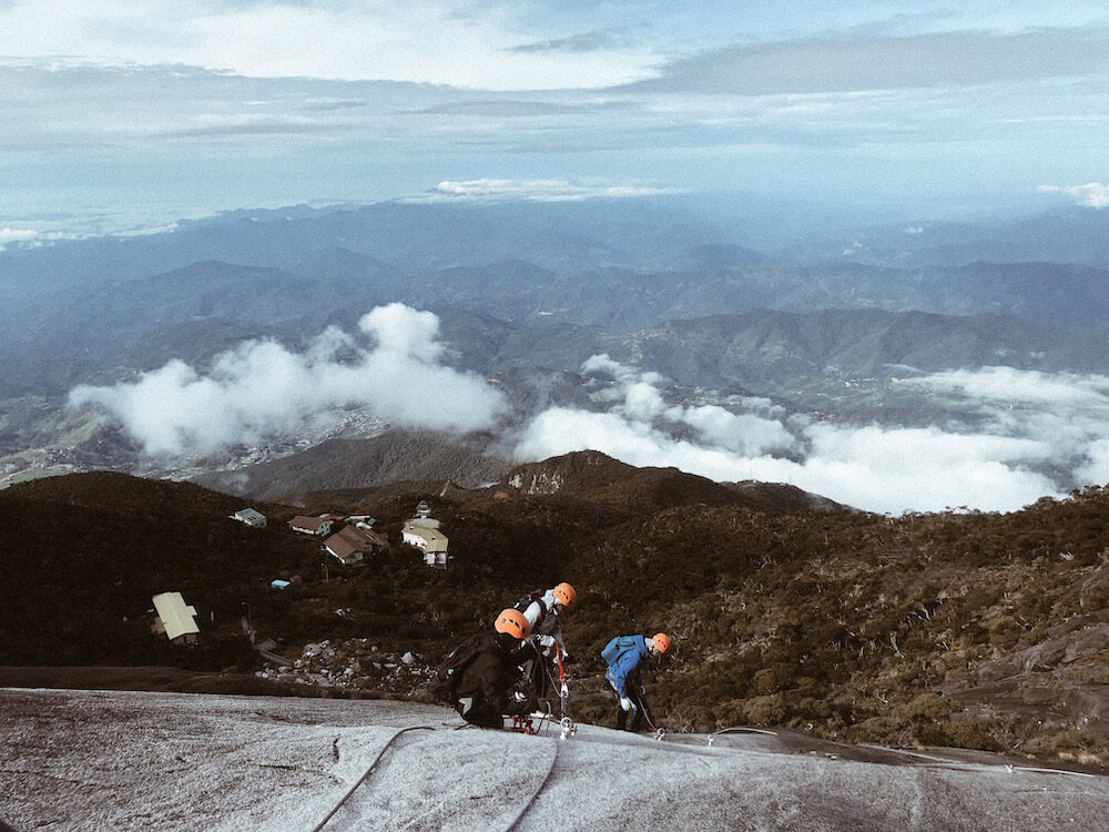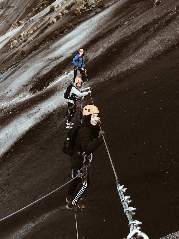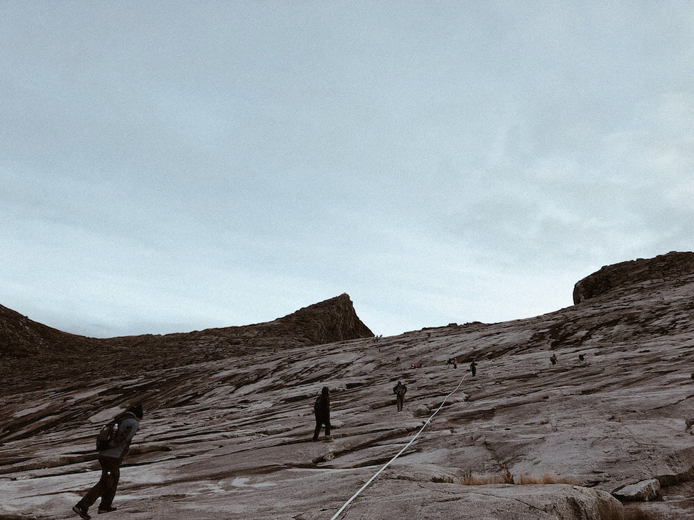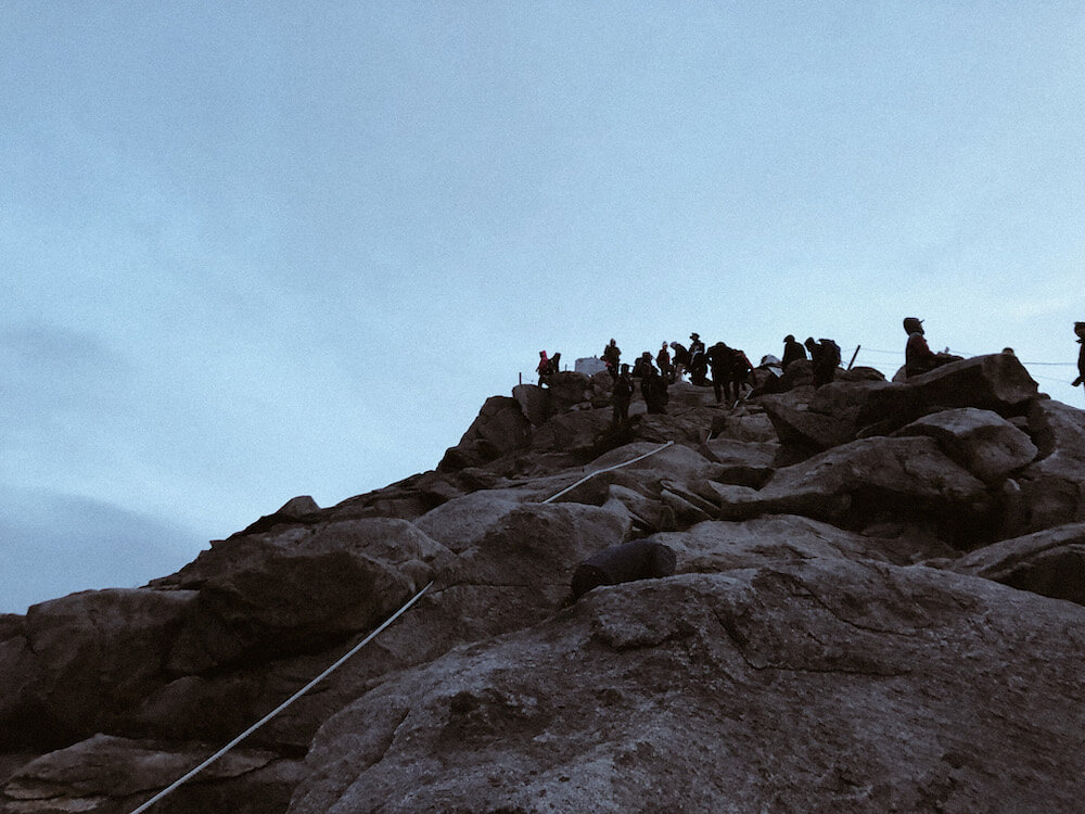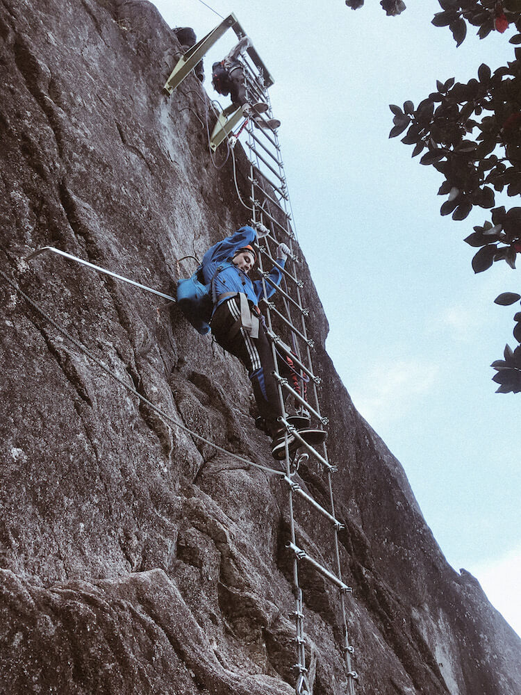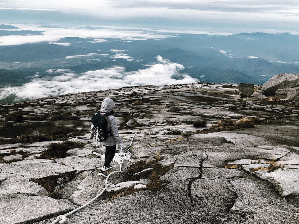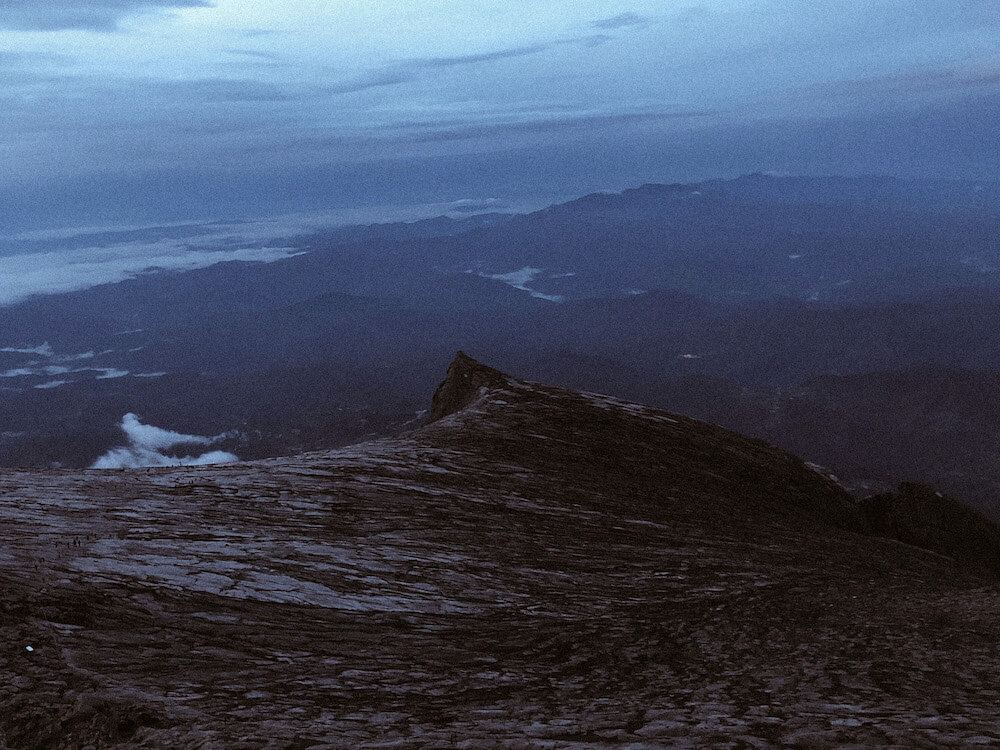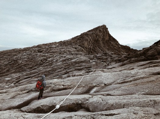 整趟旅程我有兩度想要放棄的時後。最後登頂前的一段路要拉繩索陡上,視線僅靠頭燈的光源。黑暗會無限放大想像力。隨著坡度越來越陡峭,我心中的小宇宙就爆發了。擔心天亮之後會不敢下山,就索性找一個相對平坦的地方靠著岩壁懷疑人生。但是看著不遠處的頂峰,覺得放棄的話之後一定會後悔,就牙一咬衝了。結果其實下山的時候,因為有繩索可以拉,一點都不可怕。