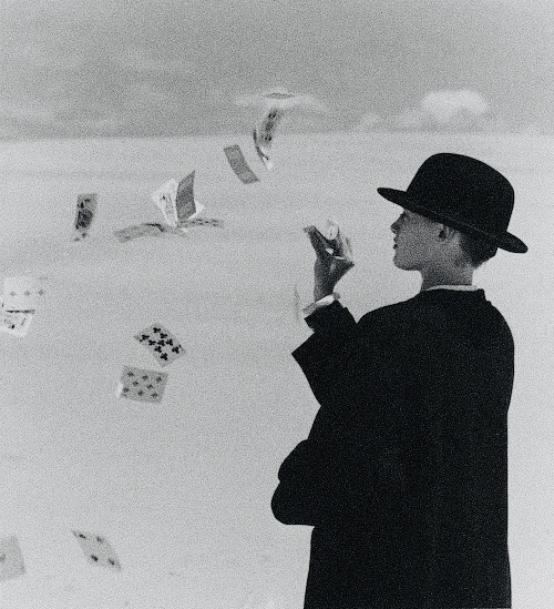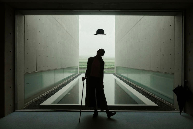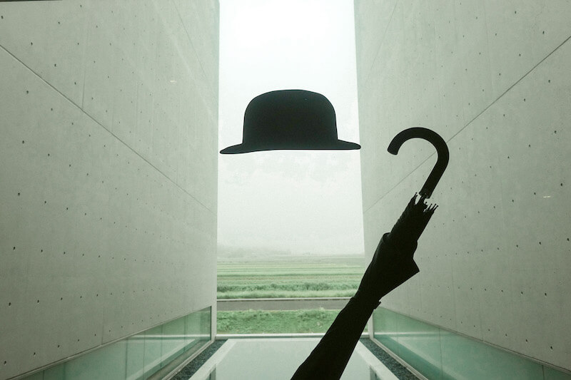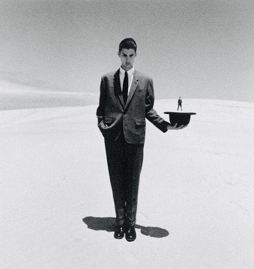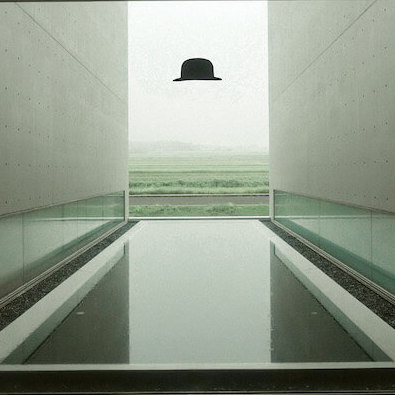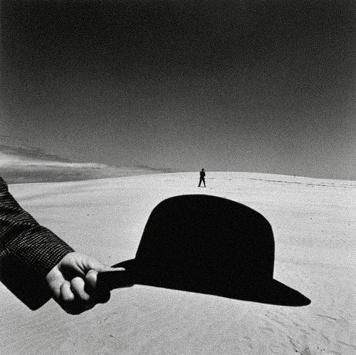 因為植田正治就住在離沙丘不遠的地方,他的作品絕大部分都是在沙丘拍攝的。我很喜歡作品中出現很多穿紳士服戴禮帽的人物,也許並不相關,但總讓我想到卓别林諷刺的惡趣味。