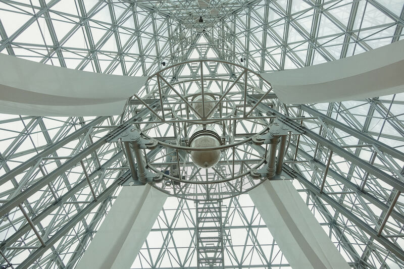 在這裡,時間是看得到的。不多不少,一年份的時間就懸吊在透明金字塔的內部,抬頭仰望除了讚嘆設計者的巧奪天工之外,也感嘆生活看似塞滿了大大小小的事情,不過就在這些沙子的流動之間。